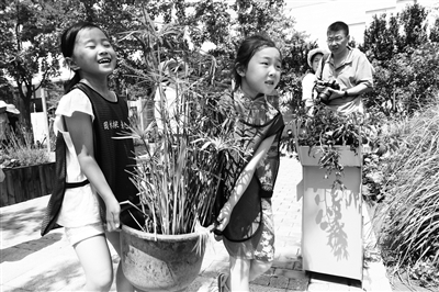 19日,中国园林博物馆通过微信平台“微园林”邀请亲子家庭,在青少年自然教育实践基地体验生态种植乐趣。亲子家庭在教师的指导下,将植物种植在合适的池塘区域内,让水生植物在园博馆“安家落户”,感受生态池塘营建的乐趣。本报记者 邱勇 摄影报道