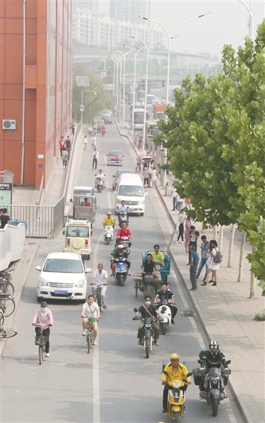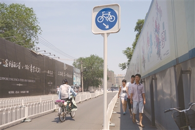 近几年来,北京一直在努力建设完善城市慢行系统,设置机非隔离护栏、增设自行车停车设施、铺设自行车彩色防滑路面、非机动车道进出口安装柔性阻车桩、减少路侧停车位等一系列举措以明确路权,倡导市民绿色交通,保障骑行者的安全。相关部门推出的这一系列保障骑车人路权的举措,说明我国城市已从过去的“自行车时代”走向了“汽车时代”。
