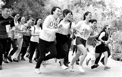 近日,朝阳门街道辖区40余家尚未建立工会组织的非公企业职工代表汇聚一堂,共同参加由朝阳门街道总工会举办的“促建会宣传交流”活动。活动中,工会法、税法的知识讲座让大家提高了对企业建会的认识,文体活动使职工们增进了了解和友谊。图为职工们在进行登山比赛。