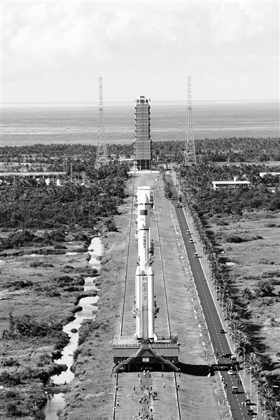 承载着长征七号运载火箭与搭载载荷组合体的活动发射平台,从海南文昌航天发射场的垂直总装测试厂房驶出,平稳行驶约3小时后,安全转运至发射塔架。从中国载人航天工程办公室获悉,长征七号运载火箭计划6月25日至29日择机发射,执行首次飞行试验任务。图为长征七号运载火箭在垂直转运过程中。新华社发