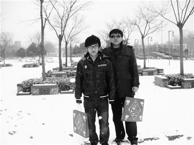 这是五六年前我和同事小曹利用周末去书市的合影留念。