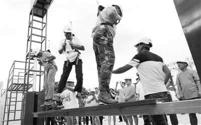昨天,北京建工二建公司职工体验式安全培训基地在丰台区小屯路落成。启动仪式上,二建工会等部门组织职工进行了突发事件应急演练。据介绍,该基地安全体验培训将面向社会和企业员工开放。本报记者 周世杰 摄影报道