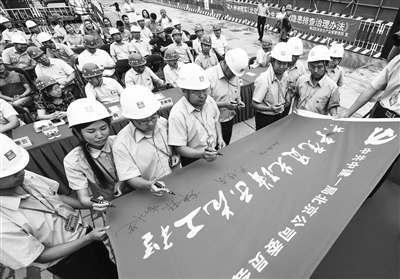 昨天,中建一局北京公司“争做先锋,党员先行”暨“党员先锋示范工程”授旗仪式举行。12名党员代表接过旗帜并签名宣誓,这也是本市首个以党员先锋命名的示范工程,旨在发扬党员的先锋带头作用,弘扬铁军精神,建设更多的精品工程,以行动践行“工匠精神”。本报记者 邱勇 摄影报道