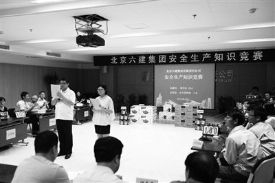 本报讯 (通讯员 姚丛屾)6月27日下午,一场以“筑牢安全基础,促进协同发展”为主题的安全生产知识竞赛决赛在北京建工六建集团拉开“战幕”。与往年不同的是,今年的竞赛经过初赛、复赛“车轮战”,最终获胜的3支“总包队”和 3支“分包队”同台竞技,打响“天王山之战”,争夺冠军席位。