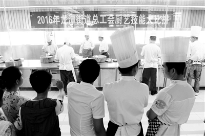 比赛最终,由青岛小海鲜的肖书峰厨师制作的赛松塔获得了一等奖。举办此次活动,就是为辖区职工提供展示的平台和相互切磋的机会。通过技能竞赛,发扬工匠精神,提高职工的综合素养,促使广大职工将工匠精神带到本职工作中。图为厨艺技能大赛现场。于佳 摄