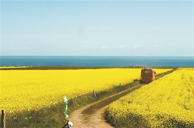 青海湖畔的油菜花,是近距离赏花玩花的好地方。你可以走进油菜花的中间,亲闻高原油菜花的芳香,像喝酒一样,陶醉一回油菜花,或在花海里与油菜花合影。你也可以骑上有西部藏区特色的毛牛,在油菜花边边慢游拍照……