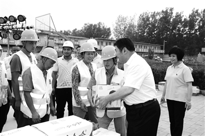 上周,通州国资房地产开发公司领导与工会工作人员冒着酷暑,来到公司一零片区项目部开展“送清凉”活动,为中建三局职工送去了防暑降温饮料和防暑保健药品,同时要求工程部做好食堂的饮食卫生和防暑降温、疾病防控等工作,确保职工的身体健康和安全施工。