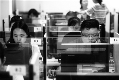 街道总工会主席马春艳介绍,计算机操作员岗位练兵是根据区总工会加强技术工人队伍建设的有关要求,为提高辖区职工技术素质而开展,此次考试采取了一人一机的方式,将考题录入计算机,考生直接上机答题,这样既能检验考生的理论知识,又可以考验实际操作能力。图为计算机操作员考试现场。于佳 摄