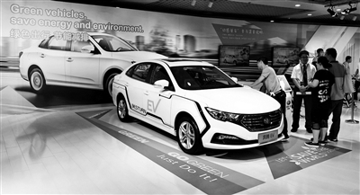 7月18日,在第十三届长春汽博会现场,参观者在奔腾EV电动车前驻足。在第十三届中国(长春)国际汽车博览会上,各大厂商纷纷推出新能源车型。中国汽车工业协会发布数据显示,上半年,我国新能源汽车产销分别达17.7万辆和17.0万辆,同比分别增长达125%和126.9%。新华社发