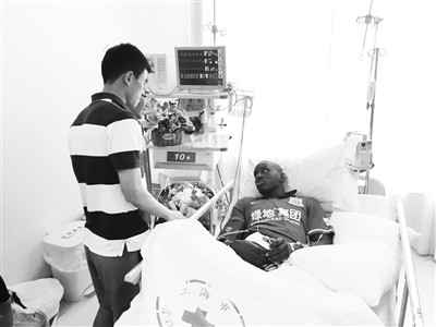 本报讯 一场惨烈的上海德比大战之后,从登巴巴被抬下场的那一瞬间,他断掉的左腿胫骨腓骨,就直愣愣地戳着每一个人的心,这其中也同样包括上港足球俱乐部的每一个人。昨天上午11点,上港足球俱乐部总经理隋国扬以及孙祥本人赴登巴巴所在医院探望,表达歉意的同时送上最深切的关心和祝福。
