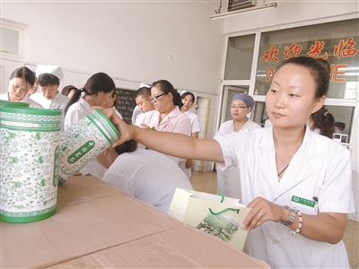 在卫计委工会的精心部署下,前期便摸底调查系统从事高温高热岗位的职工数,将防晒袖套、复方薄荷脑软膏、驱蚊花露水等防暑降温物品,汇集成“爱心清凉包”,发放至全系统2000名一线职工手中。