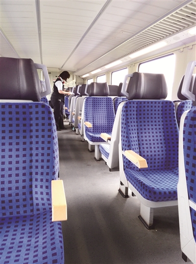 德国火车,无论是高速列车ICE、IC、EC,还是地区间慢车RE、RB、IRE,哪怕是S、BSB线,座椅舒适如豪华大巴自不必说,地面也都整洁干净,没有任何垃圾痰迹。卫生间里有充电插头、洗手液、卫生纸,有的一进去还能闻见淡淡花香。小行李可以放在行李架上,24寸以上旅行箱要放在车厢两头的行李架上,否则会影响旅客穿行。人们安静地坐在各自座位上,交谈近乎耳语。