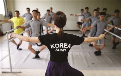 近日,为了解决前线军人压力大的问题,韩国军方为派驻韩朝非军事区的军人开办芭蕾舞班。 一群摸惯了枪的壮汉突然放下枪,在老师耐心指导下学习柔软的芭蕾动作,整个画面看起来有点滑稽可爱。