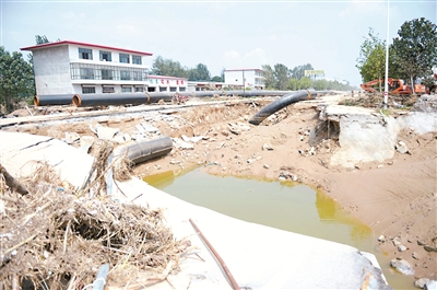 7月18日至20日,河北发生历史罕见的特大暴雨。据河北省政府统计数据,截至23日18时,河北洪水受灾人口达904万,因灾死亡130人、失踪110人。图为邢台市大贤村一处被洪水毁坏的路面。新华社发