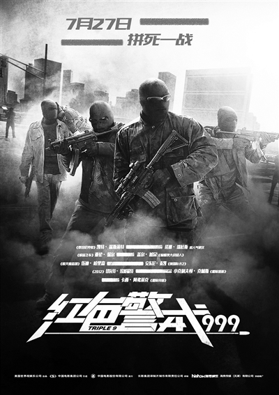 好莱坞年度犯罪动作电影《红色警戒999》将于本周上映。该片通过一桩银行抢劫案开始,逐步将警匪两个对立关系卷入同一个利益漩涡。警察内部的腐败、卧底警察亦正亦邪的身份、警匪的勾结、曾经的战友如今是敌是友、激烈的矛盾冲突……从始至终贯穿全片。片名中的数字“999”是警察内部通讯代号,意思是“有警员受伤”。