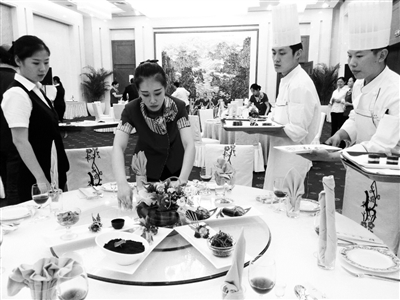 “我们要求参赛队员摆台要按照国宴标准。”相关负责人表示,他们希望通过举办技能比赛,让职工更加重视技能,更积极地提升技能,所以比赛评比采取了更高的标准。“我们想以此来告诉大家,技术追求永无止境,要不断攀登高峰,才能在社会上立足。”
