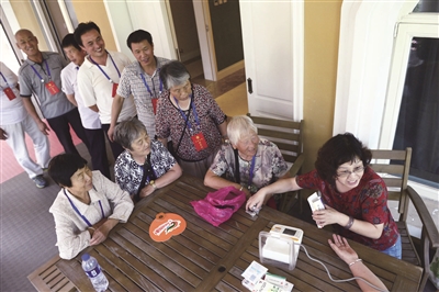日渐熟络起来的劳模们,甚至自发组织起义诊活动。由密云劳模团的队医陈光主诊,为大家量血压、谈养生,颇受欢迎。