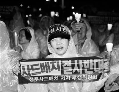 与之形成鲜明对比的是,街道上到处都是言辞激烈的标语。“要和平,不要‘萨德’!”“害死人的‘萨德’滚开吧!”