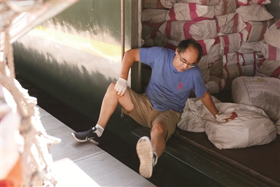 为了节省时间,装卸邮件要有序交叉进行,李凡强和刘小根正在负责从车厢里卸载邮件。“我们每人一天要装卸邮件1000多件,说实话,一天下来挺累的,可干的就是这种工作,干就要干好。”刘小根擦着汗说。