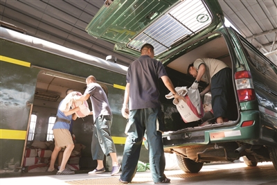 10时30分,杭州和兰州开往北京的列车先后进站,转运员们同样开始了紧张的装卸,他们几乎没有接受记者采访的时间。分局工会负责职工培训的马有彬告诉记者,“我们这些职工一个班次要工作12个小时,车站里邮件多时他们忙的都顾不上吃饭,有时到下午3点才吃上饭,他们真的很辛苦。”