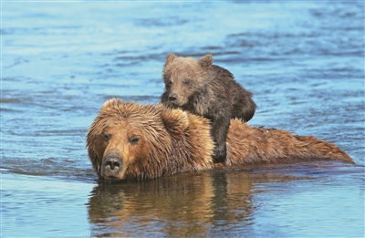 “妈咪别把我的毛弄湿了!”近日,美国阿拉斯加州Lark Clark国家公园,一头可爱的小熊显然不是很喜欢水花,它趴在妈妈的背上紧紧地抓着妈妈,让妈妈背着它过河,情景温馨感人。