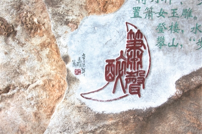 走在公园中,各个景点都能看到王跃的篆刻作品。王跃出现在明月岛时,当游客知道“明月岛”三个篆刻字出自他之手后,纷纷围拢过来,详细询问篆刻相关的知识。王跃对自己篆刻作品也倍加爱惜。每天早上7点,王跃到公园的第一件事就是绕着公园巡视一圈。如果看见有的篆刻作品上的红漆掉了,他就自己买红漆蹲下来描红字。工会领导知道后说:“怎么能自己花钱买红漆呢?”专门为王跃报销了买红漆的费用。每年7月紫竹院公园都要举办竹荷文化展,此时王跃还有一个任务——为文化展制作篆刻作品和纪念章。
