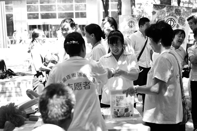 图为八里庄街道工会摆摊设点宣传建会。彭程 摄