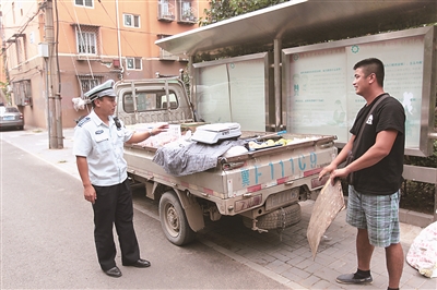 随着暑假临近尾声,全市中小学学生的开学季也即将到来。即日起至9月20日,城管执法部门将在全市学校、医院周边开展市容环境卫生责任制专项执法,重点整治学校、医院周边长期存在的无照经营、店外经营、乱堆物料、乱停乱放等问题。图为石景山城管八角街道执法队队员依法取缔学校周边无照经营摊位。