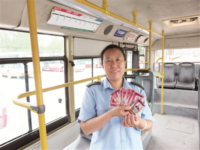 刘莉新是公交客三分公司321路的乘务员,虽然平时她的话不多,但却被同事们称做“查假能手”,一张张仿造乘车优惠卡都逃不过她的双眼。