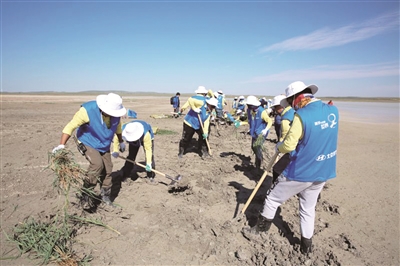 志愿者来前不仅有身体准备,更有思想准备。 “之前,有经验的同事给我说了三个感受:很累,很艰苦,很难忘。来了之后理解了这三个词的含义,栽芦苇用尽我们‘洪荒之力’——累得不要不要的;无法洗头洗澡,更不要妄想洗衣服了——生活条件很艰辛;但是,大家的无私付出、团结协作震撼了我——此生难忘。”志愿者赵腾说。