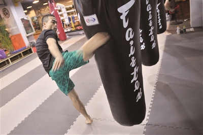 在风暴拳馆,记者见到了喜欢拳击的许占峰。出乎意料的是,他没有如岩石般坚硬突出的肌肉,身形反而显得有些瘦小,但是全身没有一块赘肉,用“精瘦”两个字来形容许占峰是再贴切不过了。