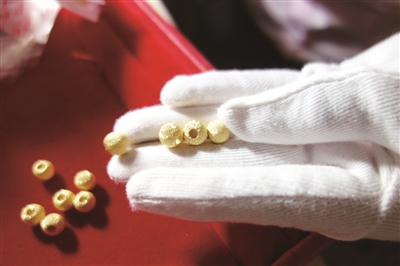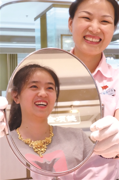 8:对每一件上柜的黄金首饰,李秀玲都要进行检查,以保证货品的完美无暇。