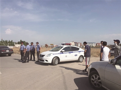 中国驻吉尔吉斯斯坦使馆当地时间30日上午遭到汽车炸弹袭击,造成使馆3名人员轻伤。外交部发言人华春莹30日在例行记者会上说,外交部已于第一时间启动应急响应机制,中方已要求吉方立即采取一切必要措施,确保中国在吉机构和人员安全,并迅速彻查事件真相,严惩凶手。图为警车停在爆炸地点附近。