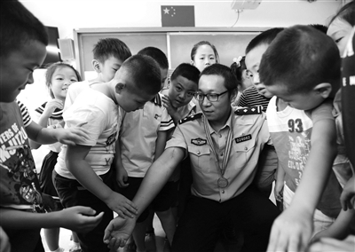 昨天,市五四青年奖章获得者、西城公安分局牛街派出所因公负伤重返工作岗位的民警吕植楠来到回民小学,为学生上了一堂生动的法制教育课。