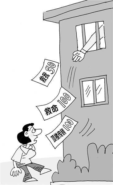 江苏徐大妈连续两天在散步时捡到数张写有“救命”“110”“传销”等字样的钞票。感觉事出有因的徐大妈报了警,警方找到撒钱者,将其从传销窝点中解救出来。撒钱者说,他想尽办法脱困,最后才想到了撒钱求助。传销头目现已被警方刑拘。(8月30日新华网)□毕传国