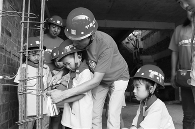 7月17日下午,中建二局北京分公司西黄村棚户区改造项目往日热闹的施工场面不见了踪影,工地上铁锤的击落声、机械的轰鸣声被40多个孩子一阵阵的欢声笑语所取代。在这里,快乐的氛围感染着每一个人。原来,这是来自西部的留守儿童走进项目工地过夏令营。