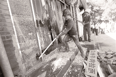 东四五条东口700米的胡同竟然违规开出了42个门洞。今天上午,东城区东四街道联合公安、城管等多部门,率先对这里的8处“开墙打洞”进行封堵,以恢复东四文化保护街区历史风貌。(8月26日《法制晚报》)