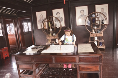 推开厚重的朱门,仿佛走进了一本泛黄的古旧线装书:一进门厅、二进轿厅正中悬挂的“五世同堂”匾额是杨榜眼的同科好友禁烟英雄林则徐亲笔所书。三进正厅,美轮美奂的砖、木、石雕看得人眼花缭乱,厅堂廊柱上的楹联“幽气若兰清音如至;雪山倚空冰壑照人”更令人回味无穷。四进衍庆堂是女主人招待女宾之处,石库门砖雕“外言不入,内言不出”是杨家的治家格言,也是给女眷立下的规矩。最后一进是阖家欢聚的地方。第四五进的二楼为前、后楼厅,由转楼相连,前厅楼“敦本堂”为主人书房,红木四方桌上搁置着笔墨纸砚等文房四宝和黑白围棋;后厅楼是待字闺中的小姐香闺,雕花大床挂着“棉绸”蓝布印花帐幔,靠墙为裙橱、高腰马桶等生活用品,一张古木屏风将闺房一分为二,隔着珠帘横置一张古琴,古代大户人家的女孩就是这样熏陶在琴棋书画里。