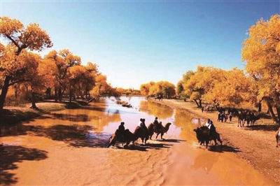 一部《英雄》让金秋灿烂的胡杨林和额济纳旗的名字比翼传扬。这个地处偏僻、至今未通飞机和火车的内蒙古西部边陲,那场胡杨林中红衣美女在漫天飞叶中的决斗,令多少人心醉神迷。不知古沙洲悠悠的驼铃,是否也唤起您心中遥远的大漠之梦? 慧子/摄影