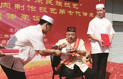 昨天,国家非物质文化遗产“月盛斋酱烧牛羊肉制作技艺”传承仪式举行。该技艺的第六代传承人满运来与第七代传承人马强、李广瑞现场签订了《传承协议》,承诺倾心传授、刻苦学习,共同将这一传统技艺传承发扬。两代传承人还在现场展示了酱烧牛羊肉的古法制作技艺。