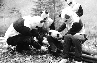 目前,我国大熊猫人工繁育工作取得有效进展,大熊猫圈养种群快速优质发展,但我国的野生大熊猫呈现出小种群多、种群隔离高、灭绝风险大的特点。为改善野生大熊猫遗传多样性、壮大野外大熊猫种群,将圈养大熊猫野化放归是一个重要途径。图为工作人员在为参加野化训练的大熊猫幼仔做体检。新华社发