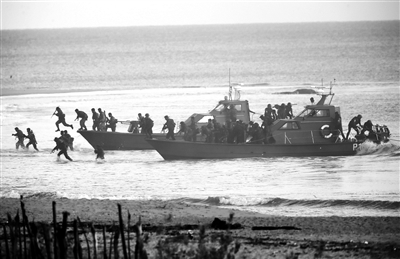 代号为“2016鸬鹚打击Ⅶ”的八国联合反恐军事演习9月20日清晨在斯里兰卡东部城市亭可马里举行最后一场两栖登陆模拟实战演习,至此这次为期20天的多国联合反恐军演成功落下帷幕。图为在斯里兰卡东部城市亭可马里拍摄的军演现场。