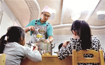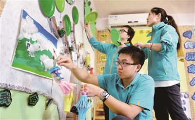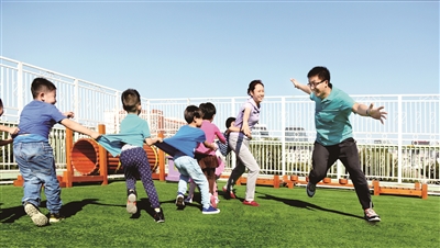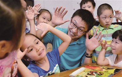 2014年,关瑞大学毕业后,就来到东四五条幼儿园工作,他是园里80多名带班教师中,仅有的2位男教师中的一个。