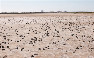 近日在山东青岛,一处被遗弃的养虾池干涸,露出在泥水中生活的弹涂鱼家园。每个小家都是弹涂鱼用嘴挖出来并将泥浆吐到外面,上面留有通气孔,远远望去,如一座座小“城堡”,成为入海口湿地的生态标志。
