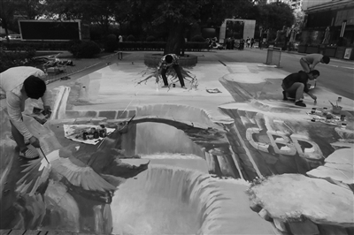上周末,世贸天阶广场附近一幅3D实景画《神奇》正在创作。在这幅8米×14米的巨型画布上,艺术家邀请感兴趣的观众在预留区域进行填色与绘画体验,与艺术家进行联合现场创作,全程参与3D画的创作过程。据了解,参与者的名字将会保留到3D画作品上,并在CBD区域永久陈列。