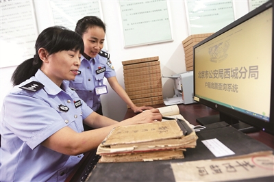 户籍底票,通俗地说,就是派出所的居民户籍档案。办户口、开户籍证明甚至寻亲找人,都可能会查询底票。对于那些几十年前的纸质老户籍档案,查询起来只能人工一本本一张张翻找,费时费力。为了提高效率,方便群众,西城公安分局研发了北京市第一个老户籍底票查询系统,实现底票查询“数字化”。目前,从1949年以来的1250万页老底票已完成录入输机。