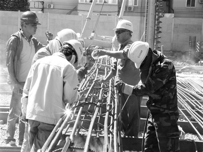 金秋时节,承建北京新机场、城建科技大厦、北影洗印厂危旧房改造、丽泽交通地下环廊、门头沟上悦居、北京海淀区老旧小区改造等多项工程的北京城建二公司数千名施工人员,积极响应公司工会“建功‘十三五’、实现良好开新局”劳动竞赛号召,在各个工地上,紧紧抓住金秋好时光,掀起了劳动竞赛的热潮。图为承建北影洗印厂危旧房改造工程的员工,在劳动竞赛中,争分夺秒,一丝不苟地焊接工程地柱的场面。