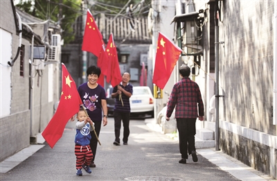昨天上午,一面面鲜艳的五星红旗出现在东华门街道南池子社区的居民院门口。“要不是下雨,我昨天就挂上了!”带着小孙子在胡同里挂国旗的钟大妈告诉记者。从昨天起,南池子社区的307个院都将悬挂国旗迎接国庆。