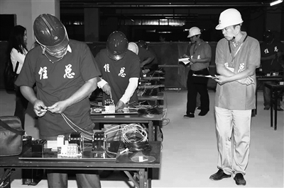 曾在2004年获得北京市青工比武工程电气设备安装调试组第一名的住六公司张剑,作为评委参加了今天的活动。他认为蓝领工人是施工一线的中坚力量,技术部门应该组织这些技术骨干进行各种技术攻关。他建议,集团公司对技术能手进行重点培养并提供深造机会。张剑还希望充分发挥老一辈工程技术人员的经验,以“传帮带”的形式,为企业培养全面充实的技术人才。