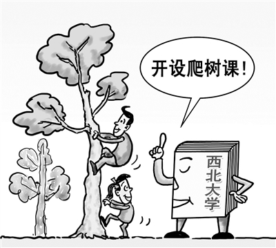 爬树也是一门学问?是的。它的学名叫攀树,大学开设这个课程到底是为啥?27日陕西省教育厅官方微博发布消息:西北大学今年新开了攀树课,该课程是面向研究生新开设的体育选修“户外运动”课程的一种,除了能体验与平地不同的视觉感受,观察多样的生态系统外,还能促进“树冠层研究”的发展。(9月28日《华商报》)□赵顺清